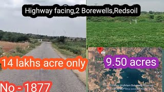 || Highway facing, 2 Borewells, Pure Redsoil,Near Dam|| 9.50acres || 14 lakhs acre only|| No-1877