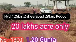 || 20 lakhs acre only|| 1.20 Gunta||Zaherabad 28km, Hyd 125km|| Redsoil, Highway 2nd ||No – 1800