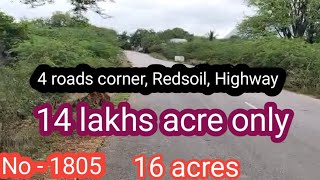 || 4 Roads, Village attached, Highway facing, Redsoil|| 14 lakhs acre only|| 16 acres|| No – 1805